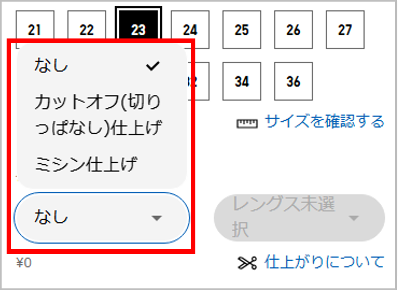 - 裾の折り上げ幅(裾からステッチまでの長さ)は、商品ごとに決まっているため指定できません。