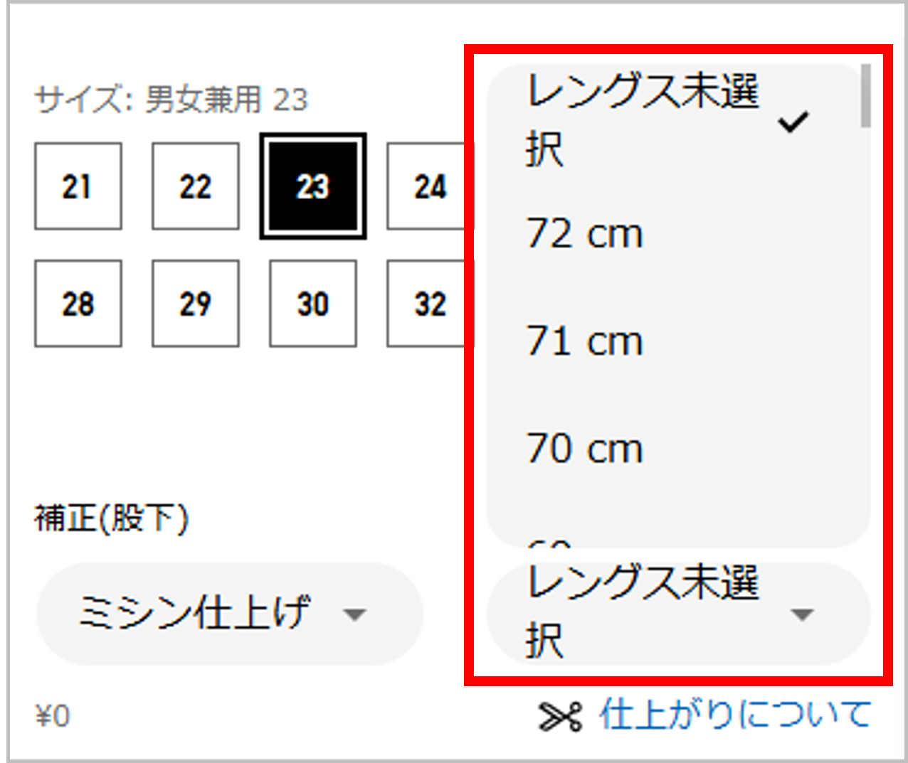 - [レングス未選択]をタップし、レングスを選択