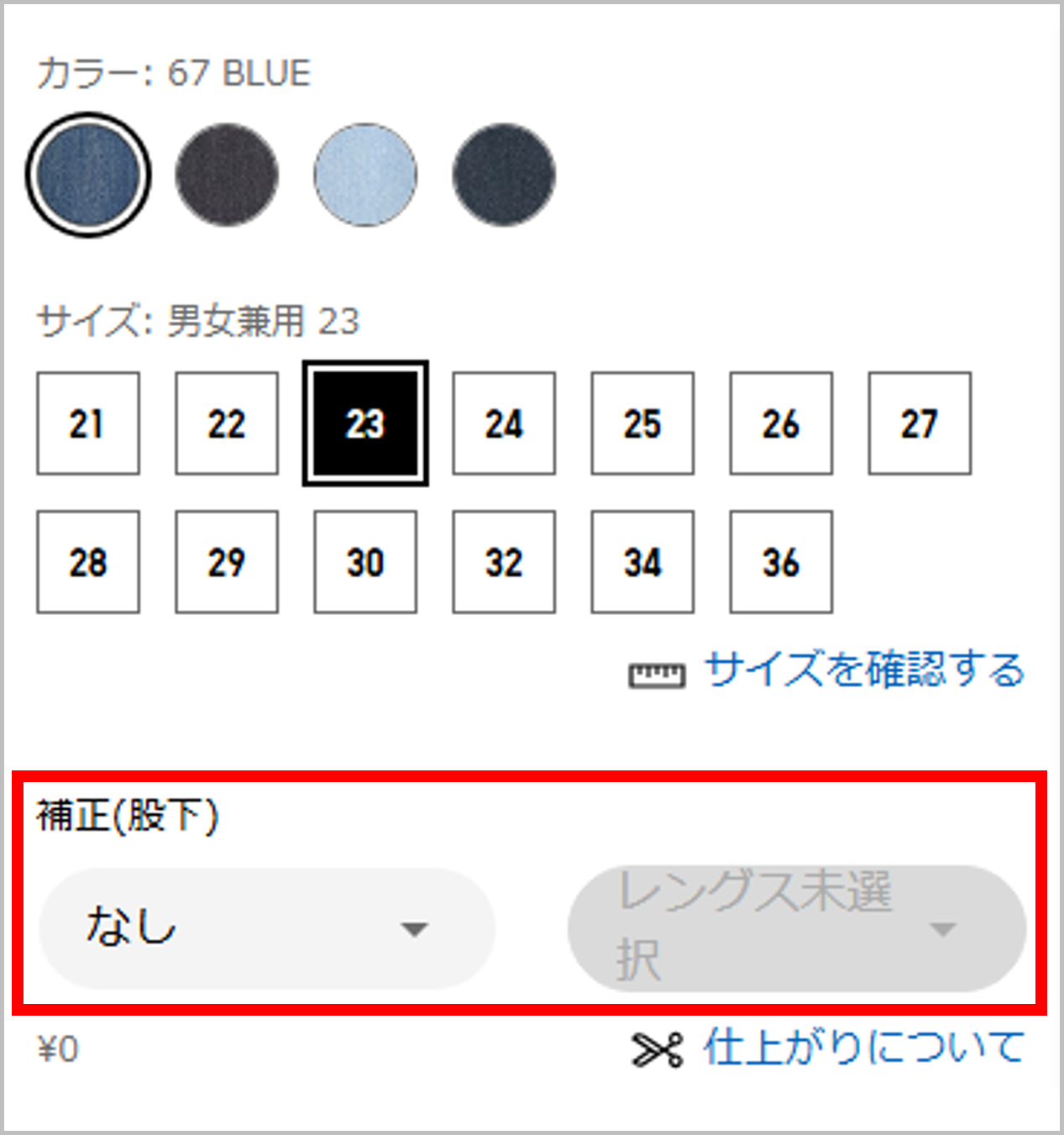オンラインストアでは、注文時に補正対象商品の裾上げを承ります。