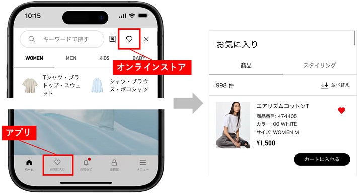 - ユニクロアプリ、オンラインストアで共通のお気に入りリストをご利用いただくには、ユニクロアプリでオンラインストアにログインする必要があります。