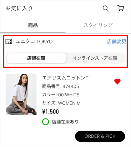 - ユニクロアプリでは、店舗選択していただくことで、店舗在庫の状況が確認できます。