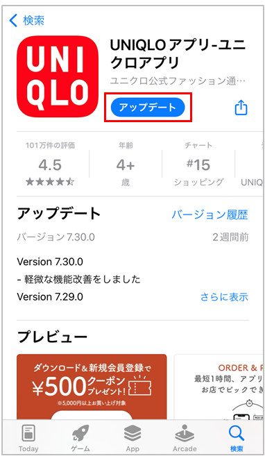 快適にご利用いただくため、最新版アプリへのアップデートをお願いします。