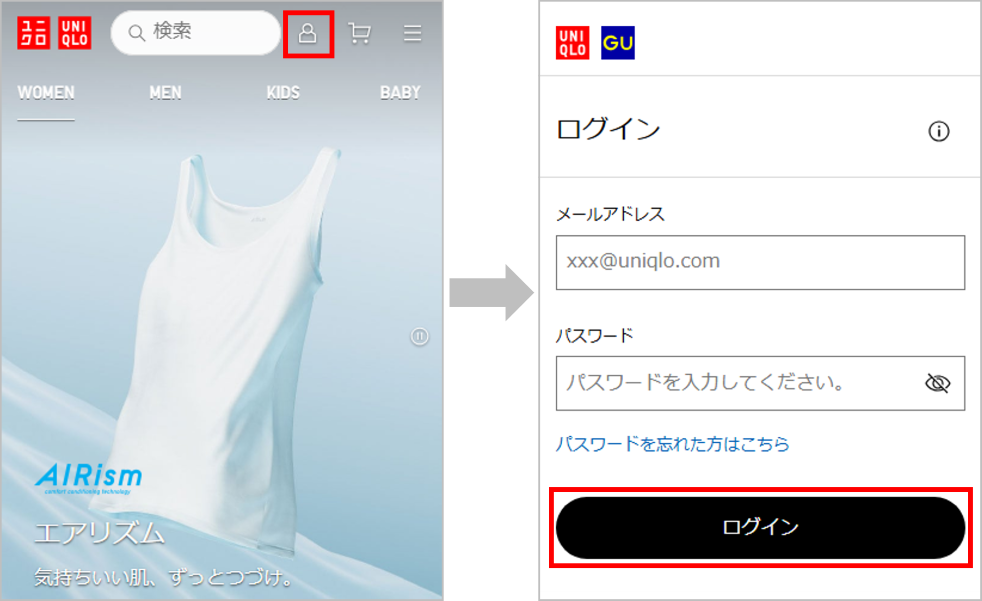 • ユニクロアプリからの操作手順