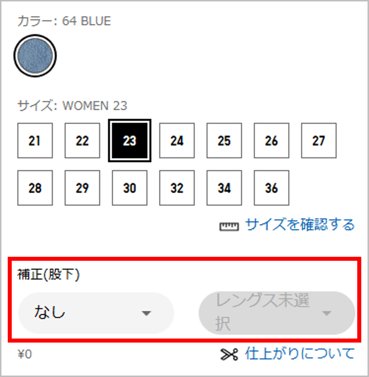 オンラインストアでは、注文時に補正対象商品の裾上げを承ります。