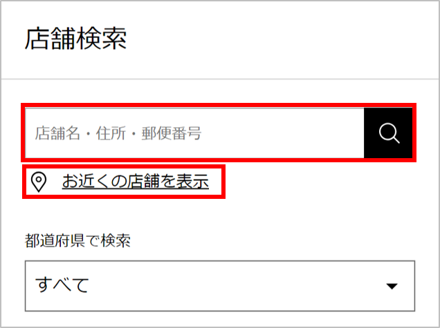- 位置情報がOFFになっているときは、[お近くの店舗を表示]をタップしても反応しない場合があります。位置情報を設定後、再度開きなおしてください。