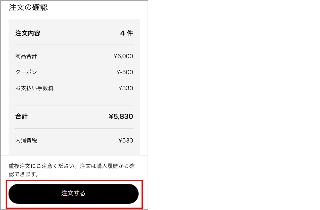 注文内容を確認し、[注文する]をタップ