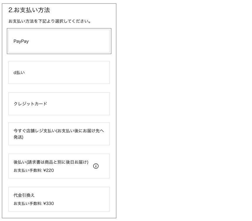 表示されたお支払い方法からご指定ください。