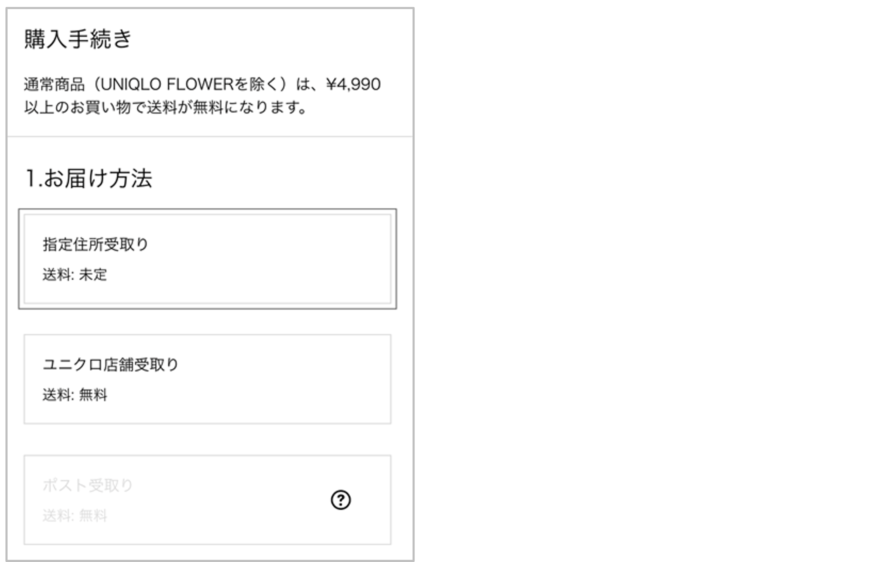 - ユニクロ店舗受取りを利用する場合、配送日時は指定できません。