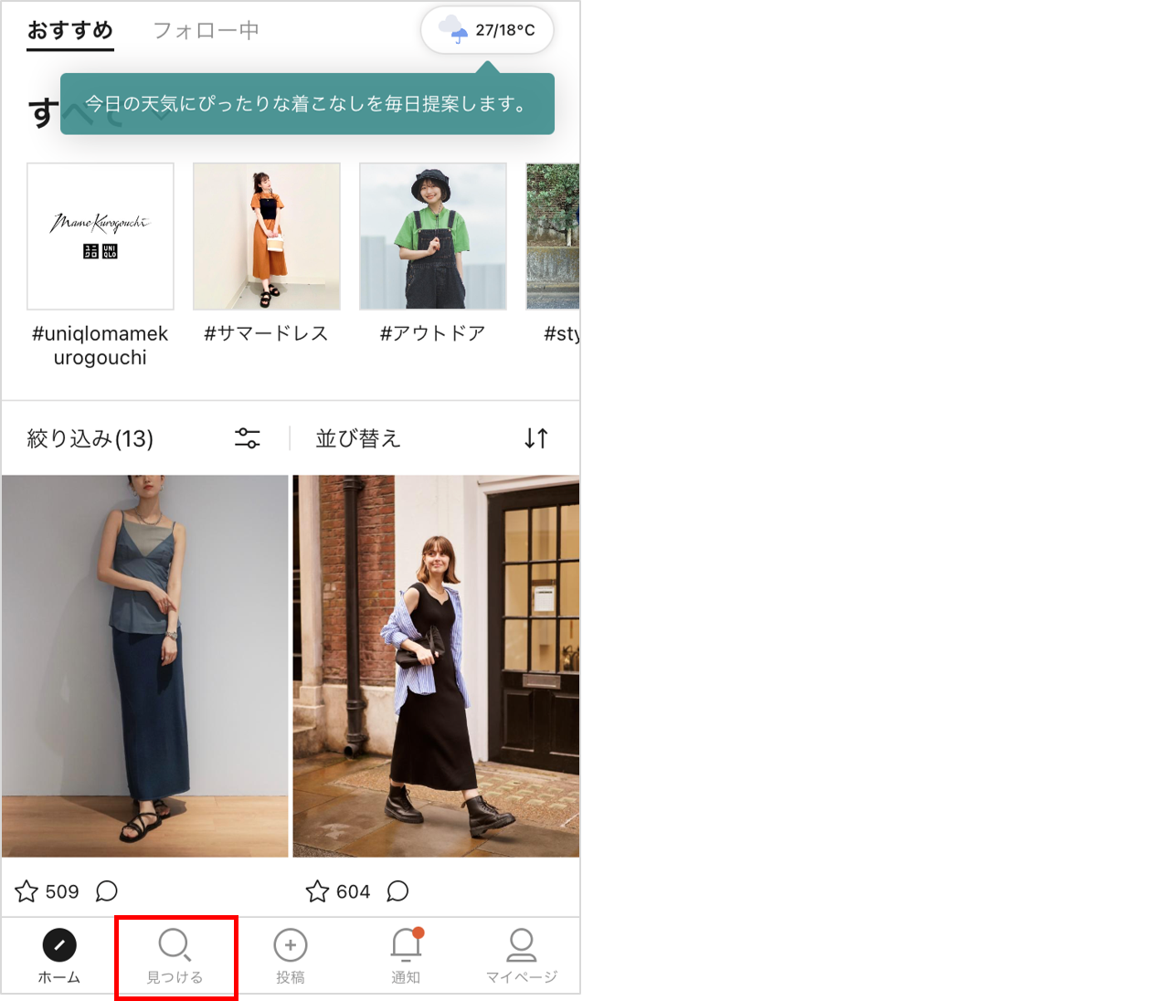 - StyleHintアプリ下側の「見つける」をタップしてください。