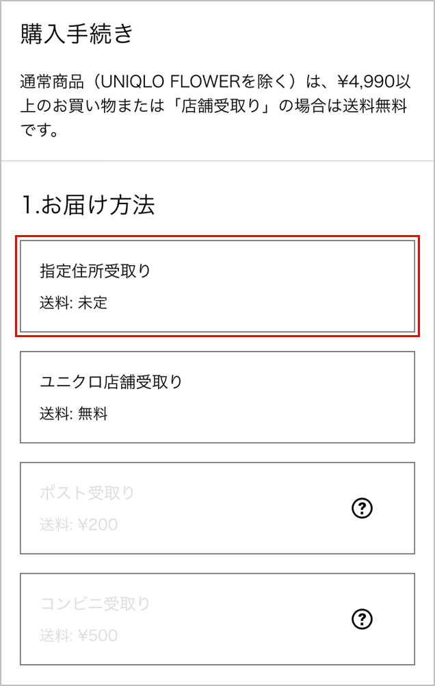 1.お届け方法を選択する
