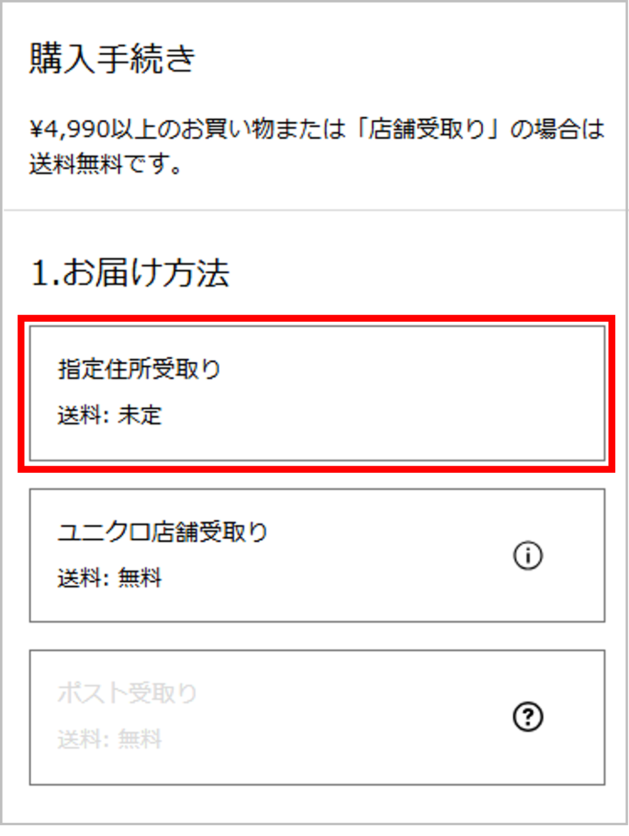1.お届け方法を選択する